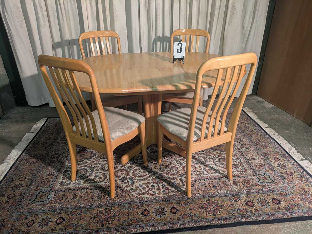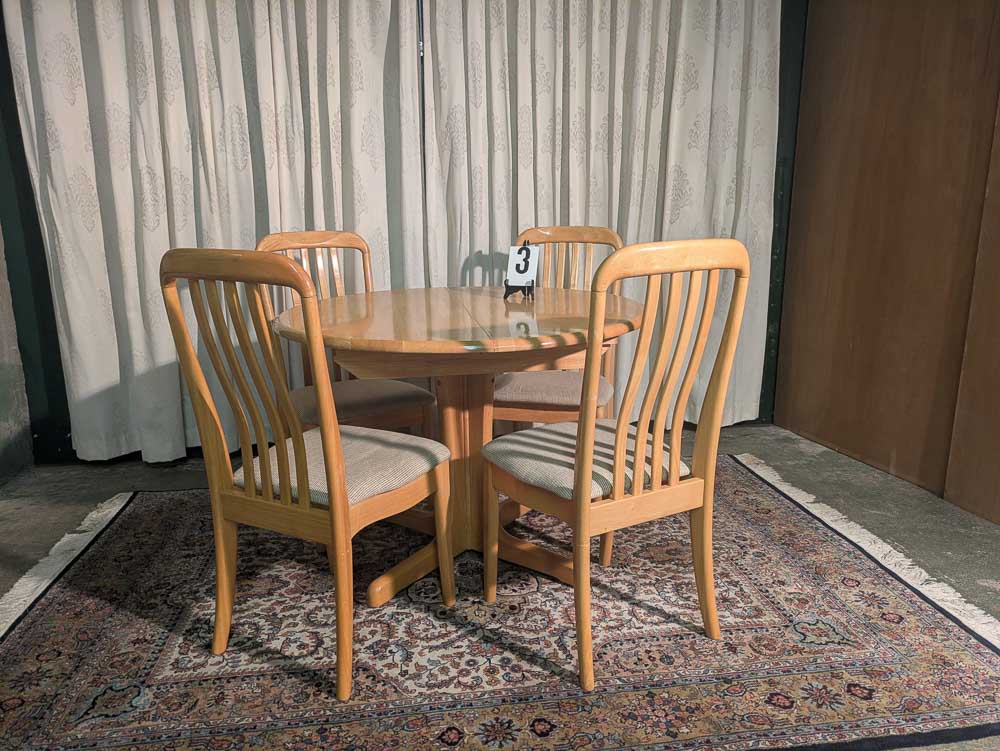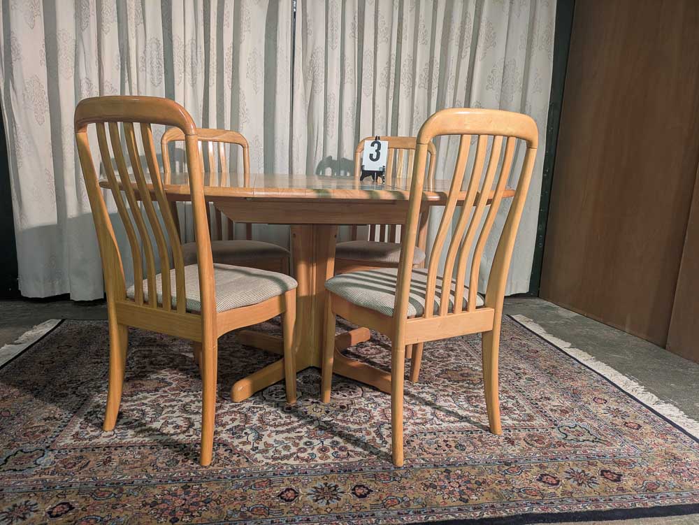 Beschrijving: Een zeer nette, massief houten eettafelset met vier comfortabele stoelen. Deze vintage tafel heeft een warme, natuurlijke uitstraling en is door het uitschuifbare blad ideaal voor zowel een compacte ruimte als voor gezellige diners met meer gasten.