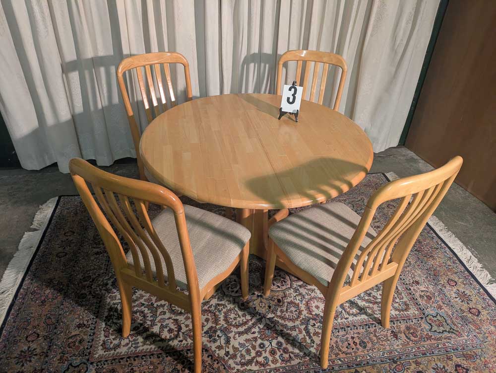 Prachtige Ronde Houten Eettafel set met stoelen (Uitschuifbaar).